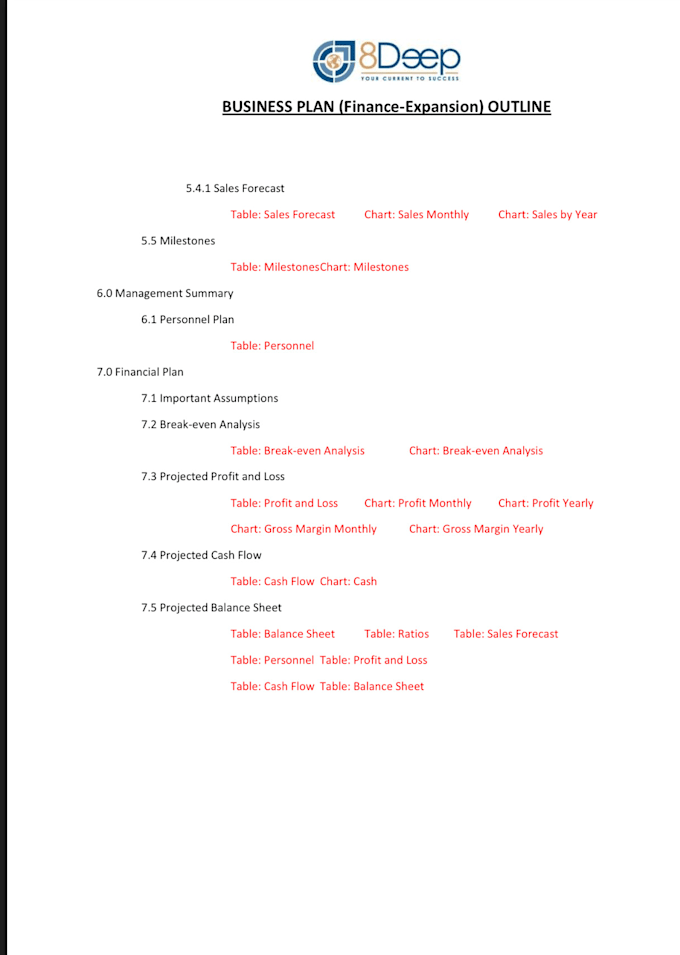 Your plan will include 3 year or 5 year financial projections of your choice.