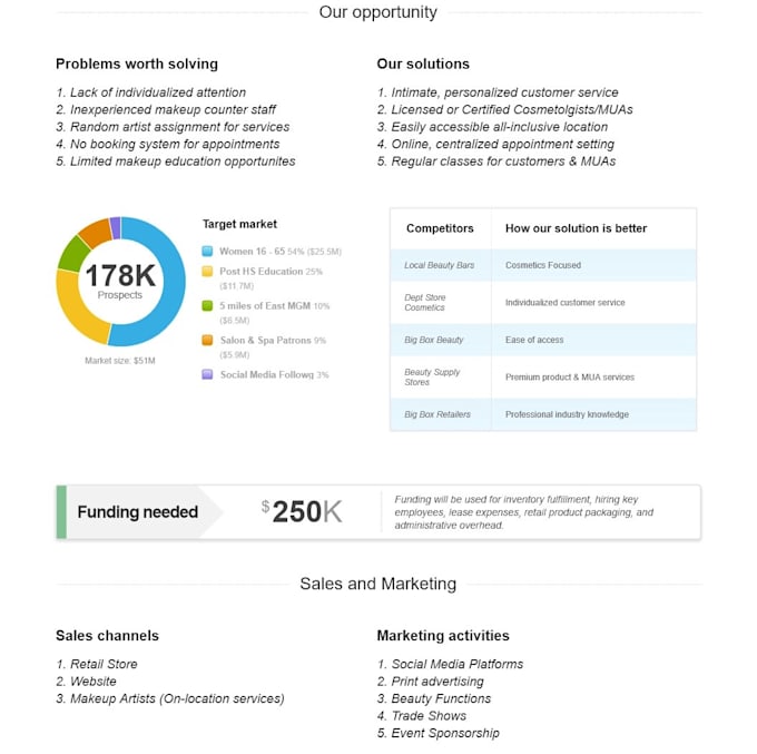 I will create a lean business plan with charts and graphics