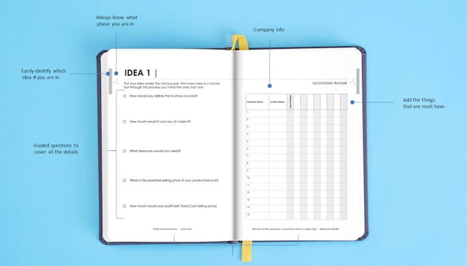 THE ALL IN-ONE ACTIONABLE PLANNER CREATED FOR ASPIRING ENTREPRENEURS IS THE MISSING LINK BETWEEN YOUR DREAM AND LAUNCHING YOUR PROFITABLE AND SUSTAINABLE BUSINESS. Actionable Planner helps you organize everything about your idea in one place while guiding you step by step thru processes and ideation exercises that commonly fall into the cracks while developing a business. Each idea is broken down into 3 sections: ACT- ION-ABLE.- You get to brainstorm and decide wish idea is better to pursuit, Dotted pages to sketchs, Quotes in every page to keep motivated, Quote tracker so you know how much it will actually cost, To do list, Timeline tracker, 3 Month undated calendar